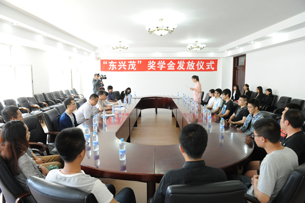 6月3日下午,2014年度“东兴茂”奖学金发放仪式在综合办公楼610会议室举行。今年我校有5名学生、12个团队获得7.5万元“东兴茂”奖学金。校党委副书记蔺海波出席发放仪式。
