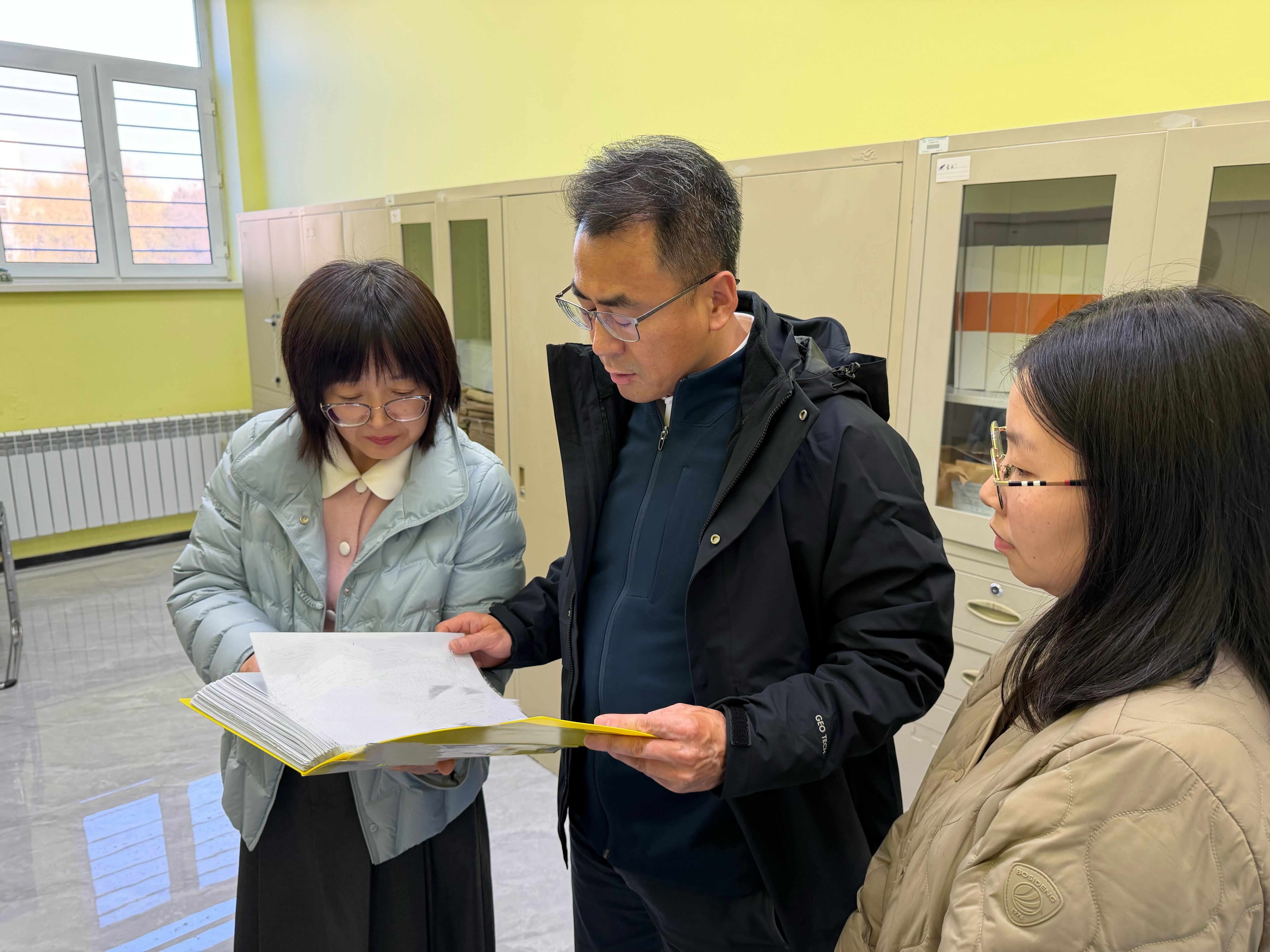 党委常委、副校长张春雷查阅了心理健康教育中心有关材料