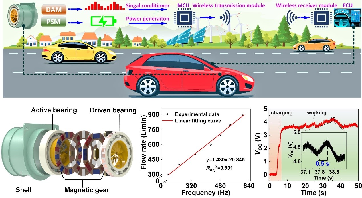 汽车空气流量传感器用于测量进入发动机的空气流量,其信号决定了发动机喷油量,进而会影响汽车的油耗。研究人员提出研制一种基于磁调控机制的摩擦电式自驱动流量传感器(STIFS),他们开发设计了新型无轴涡轮,提高了传感器的气流通过性;基于摩擦纳米发电机原理并采用类轴承结构的传感单元,实现了汽车空气流量的高灵敏度测量。为保证后端处理模块的实时供电,设计了磁齿轮电磁发电机。研究结果表明:STIFS在显著提升传感器灵敏度的同时,具有较好的线性度和重复性。本研究工作中所研制的STIFS成功实现了大流量气体管道的实时无线监测,为新型自驱动气体流量传感器的开发提供了理论和试验基础。