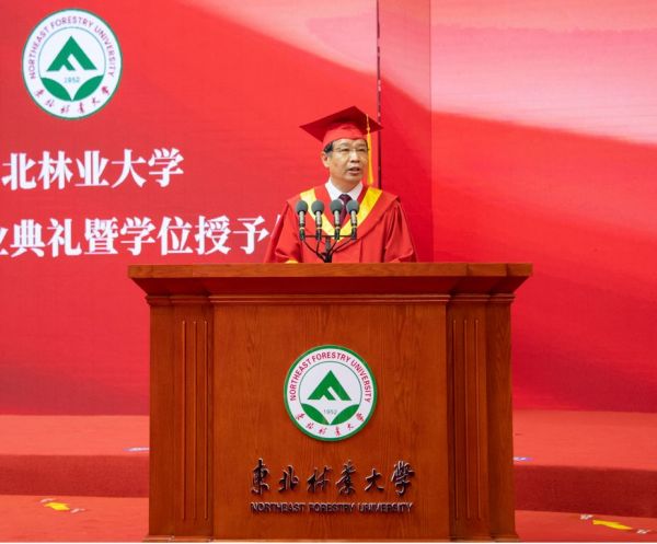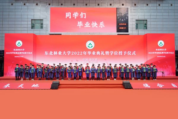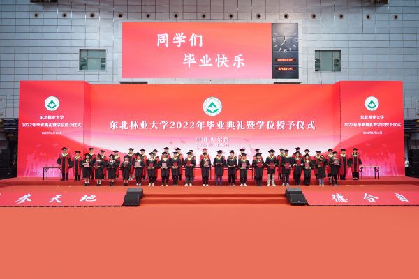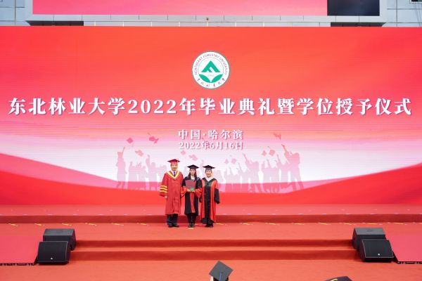 再过24天,学校将迎来70周年校庆,海内外校友将通过线上线下相结合的方式,同庆母校七秩芳华,共享东林发展荣光。当天的毕业典礼上,学校特别邀请了在学校建校30年时毕业的本科1982届木材机械加工专业毕业生刘一星教授,建校50年时毕业的本科2002届林产化工专业毕业生孙亮校友,今年毕业的博士毕业生代表、林学院来自刚果(金)的欧宝力同学,硕士毕业生代表、经济管理学院陈嘉馨同学,本科毕业生代表、文法学院靳楉涵同学,他们深情朗诵,回顾了在东林求学奋进的美好时光,表达了对母校的感恩之情和深深眷恋,以及身为东林人的骄傲和自豪。