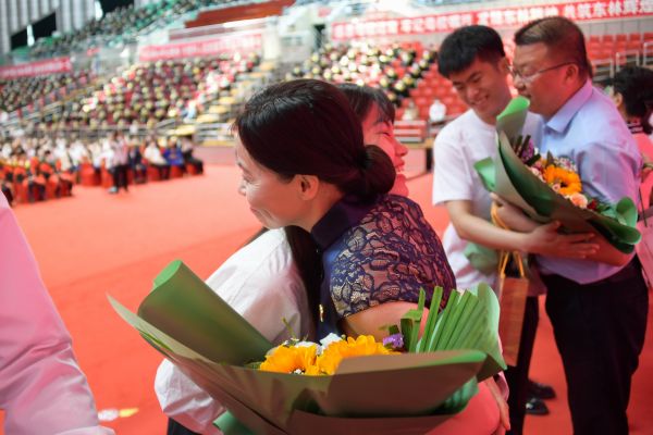 在2022届毕业生谢师恩环节,视频中的学子以不同的方式表达了对老师的感恩和祝福,把特别的爱献给了敬爱的老师。在现场,毕业学生代表向老师行谢师礼,并送上了鲜花和祝福。
