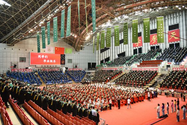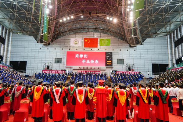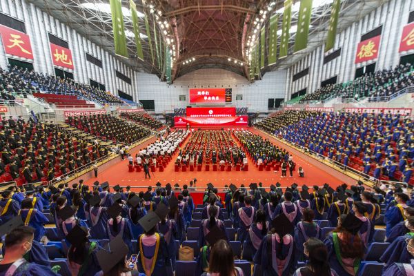 灯与河川,六月人间;夏风张扬,六月别样。6月16日上午,学校通过线上线下相结合的方式,在体育馆隆重举行2022年毕业典礼暨学位授予仪式,为6887名2022届本硕博毕业生上最后一堂课。学校领导、学校学位评定委员会委员、教师代表、学校相关院部处室负责人,以及学生家长代表、校友代表,与2022届毕业生在现场见证了这一难忘时刻。学校党委常委、副校长雒文虎主持毕业典礼。