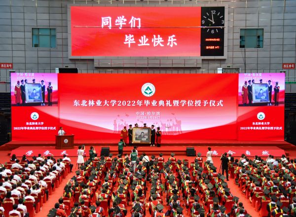 毕业典礼伴随下课铃声落下帷幕,全场师生同唱《前进 东北林业大学》,用歌声祝福母校70岁生日快乐!