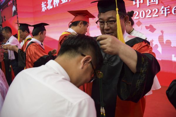 在2022届毕业生学位授予仪式上,雒文虎宣读了《东北林业大学学位评定委员会关于授予学位的决定》。