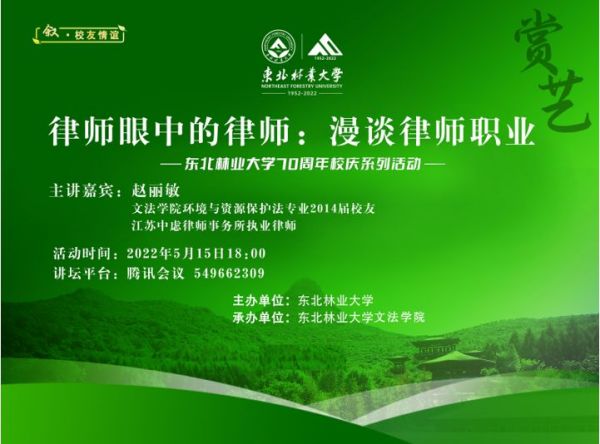 赵丽敏,女,中共党员,年毕业于我校法学专业,现为江苏中虑律师事务所执业律师,江苏省法学会生态法学研究会理事,受聘东北林业大学文法学院客座教授、硕士生导师。