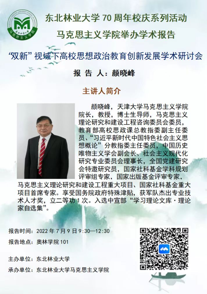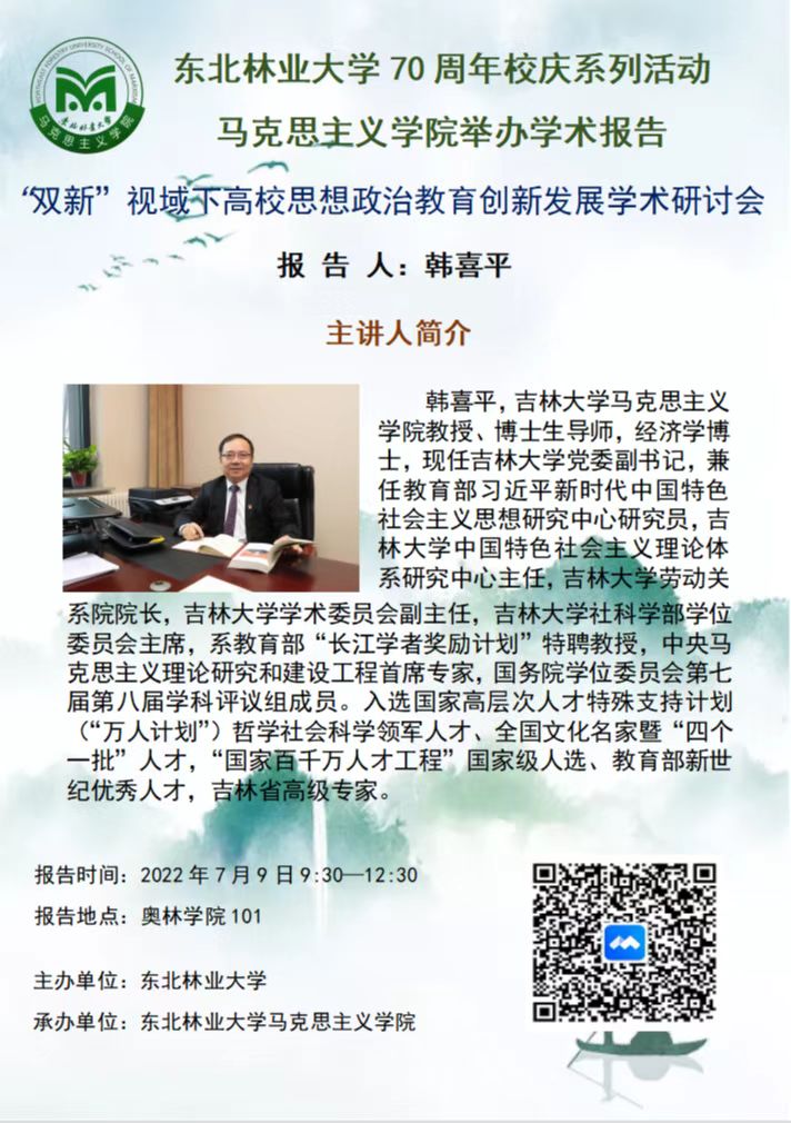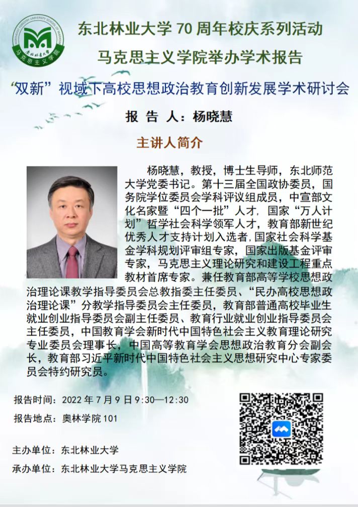 报告题目:“双新”视域下高校思想政治教育创新发展学术研讨会