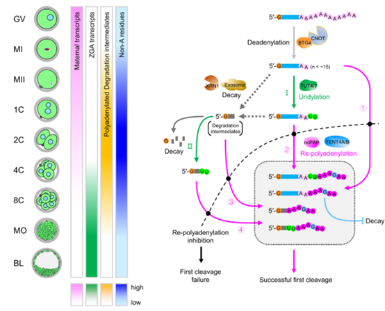 2023年1月17日,我校生命科学学院引进人才“成栋杰青”刘玉胜教授,联合中国科学院遗传与发育生物学研究所陆发隆研究团队、山东大学生殖医学研究中心陈子江/吴克良研究团队、中国科学院动物研究所周兵研究团队以及东北农业大学王加强研究团队,在国际顶级期刊Nature Structural & Molecular Biology(影响因子18.361,生化与分子生物学一区top,生物物理一区top,细胞生物学一区top)发表了题为“Remodeling of maternal mRNA through poly(A) tail orchestrates human oocyte-to-embryo transition的长篇研究性论文。