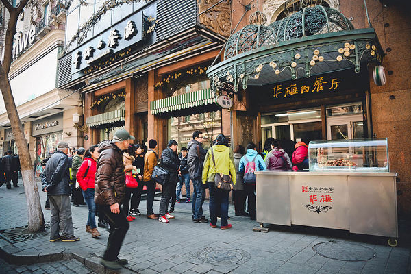 华梅西餐厅:也在中央大街主街上,走着走着就发现了,因为几乎每天都有人在排队买华梅西餐厅的面包。哈尔滨第一家俄式西餐厅,面包挺好吃,就买小面包就行,沙一克、大列巴等估计大家吃不习惯。建议在外面买了小面包进去西餐厅吃,在餐厅里点面包就贵了。小东吃过的是红菜汤、罐焖土豆牛肉、罐焖虾、牛排(有点贵)。一定去坐2楼,一楼太吵也不舒服。