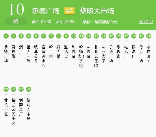 从这里返回林大需要换乘,在太阳岛道口站等车,随便一辆能到公路大桥站的车都可以(车价多数是一元,有的车是两元),在公路大桥站乘坐56路到林业大学下车。