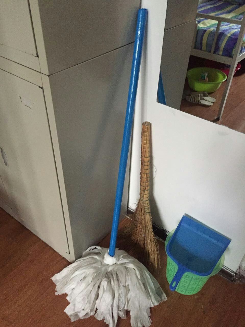 3. 门后只允许摆放卫生工具(扫帚、拖把、撮子、垃圾桶) ,卫生工具清洁且摆放整齐于进门右侧,如有垃圾桶,桶内清洁无任何杂物,不允许放置塑料袋于内。