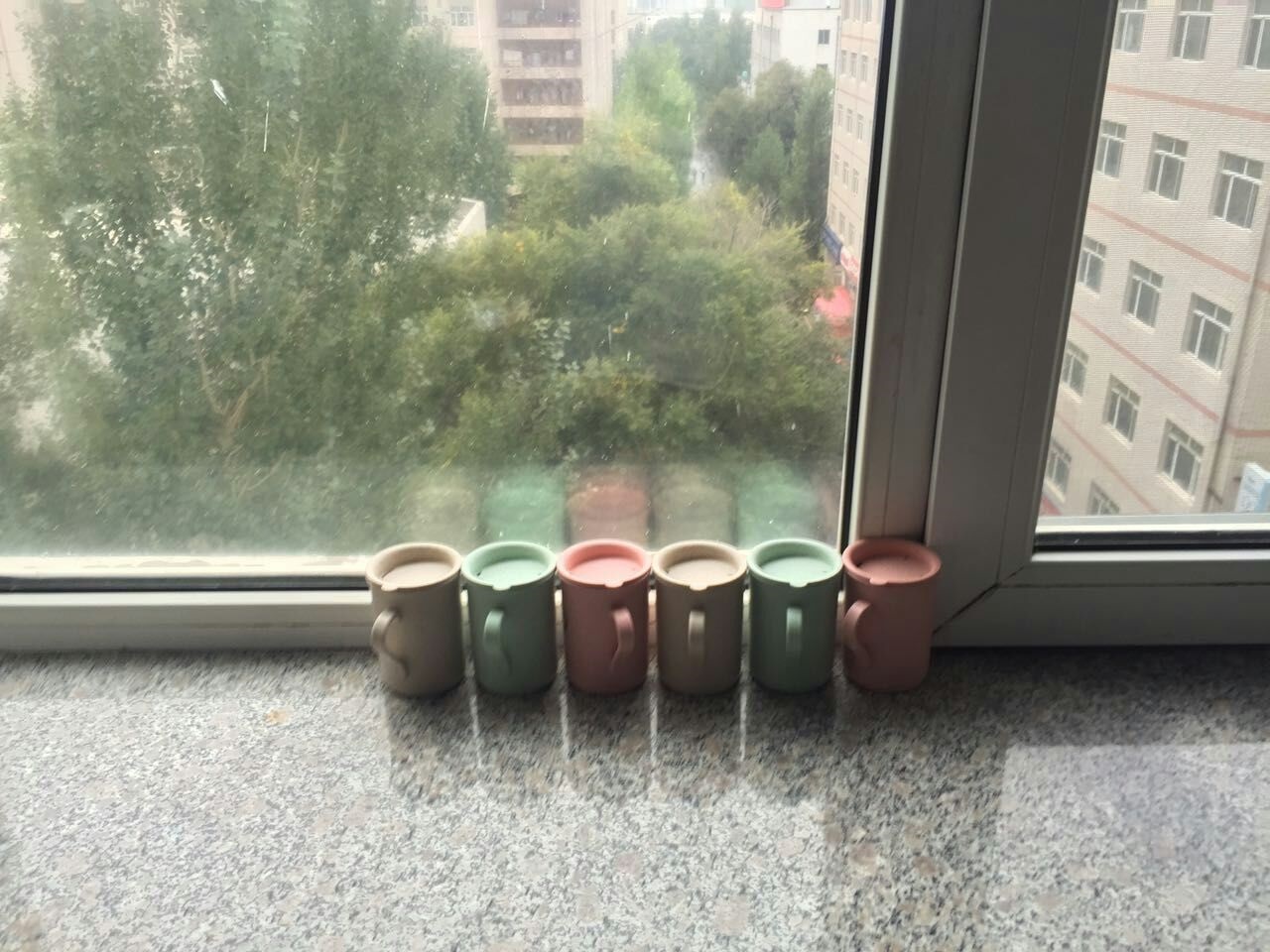 2.窗台清洁,保证无灰尘、无水迹,禁止摆放除水杯之外的任何物品,水杯需紧贴窗框左侧,由左至右、由大到小一排整齐摆放。(注意:不可摆放塑料瓶,水杯数量控制在六个以内)