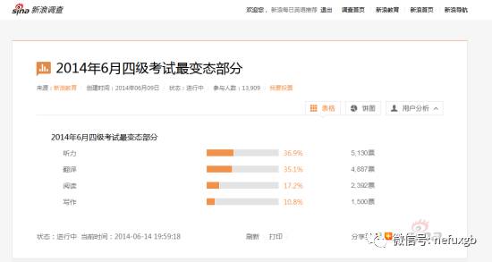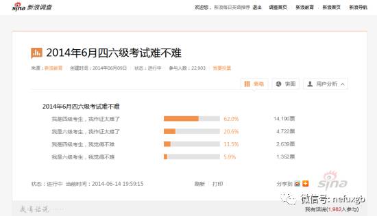 大佬说了这么多,不知道大家有没有认真记笔记呢!不过只要小松鼠们的积极备考和充分准备,其实最重要的就是心态啦,保持一颗平常心就好~接下来跟小东看看新浪网在2014年关于四六级考试做的一项有趣的统计——
