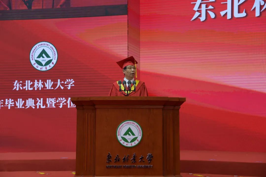 东林70年的校史是一部植绿护绿、绿染山河的历史。“小树老树那就是我,我和大地连着脉搏”。既为东林的毕业生,便自然拥有了“林”的底色、“林”的烙印、“林”的品格。你们中,有一直从事生态环保志愿服务,助力社团荣获“母亲河奖”的绿色使者;也有五十余人加入了“支林”计划,将深入基层林区一线,为国家林业事业发展、生态文明建设贡献力量。我为你们知林爱林的行动而自豪,你们是“林”的传承人!“纤纤不绝林薄成,涓涓不止江河生。”希望同学们从点滴做起、从细节着眼,躬身实践、率先垂范,成为植绿护绿的引领者、生态文明的传播者、“两山”理念的践行者,为实现“碳达峰、碳中和”战略目标,为建设美丽中国而不懈奋斗!