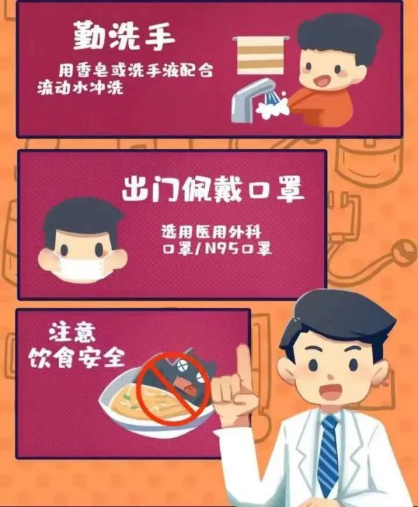 5.注意饮食,不接触、购买和食用野生动物,禽肉蛋要充分煮熟后食用。