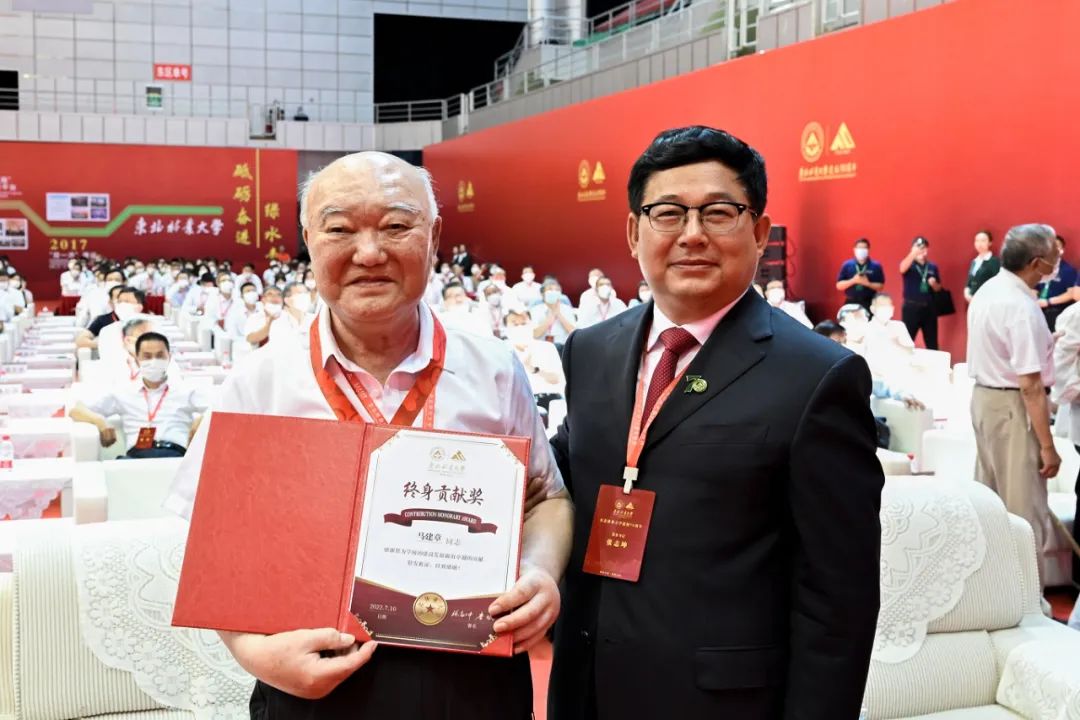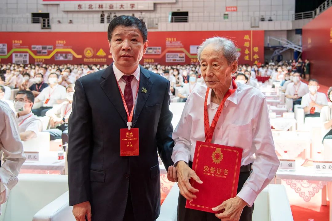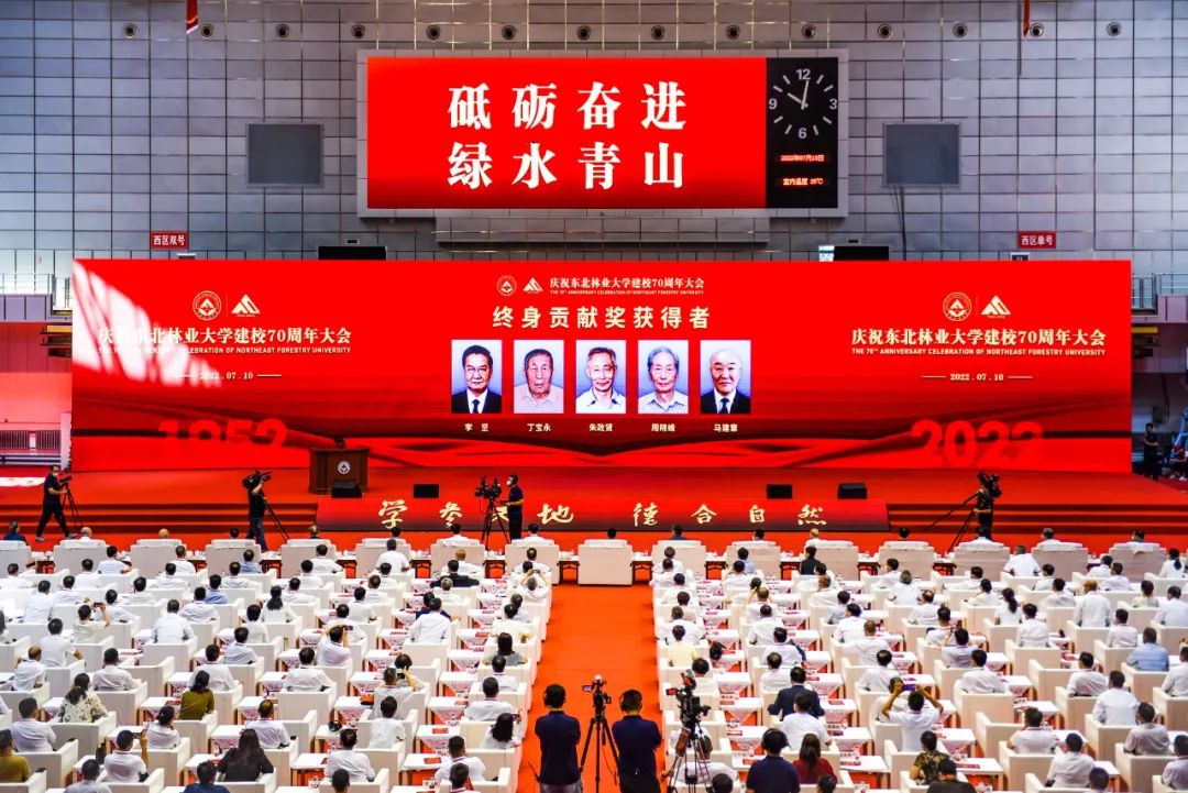 为感恩和铭记前辈们的特殊贡献,在建校70周年之际,学校特向工作在东林、服务在东林的著名木材干燥学家、新中国木材高效节能干燥技术及装备研发、产业化推广的拓荒者和实践者朱政贤教授,著名生态学家、我国“栽针保阔”经营理论、森林生态效益补偿机制、森林生态系统定位研究的奠基人和开拓者、帽儿山森林生态站创建者周晓峰教授,著名森林培育学家、地退化森林生态系统恢复的奠基人,效应带造林、人工林动态抚育技术的发明人丁宝永教授、中国工程院院士、著名野生动物管理学家、国家级教学名师马建章教授,中国工程院院士、国际木材科学院院士、著名木材学家、林业教育家,东北林业大学原校长李坚教授五位老前辈隆重颁发了东北林业大学“终身贡献奖”。