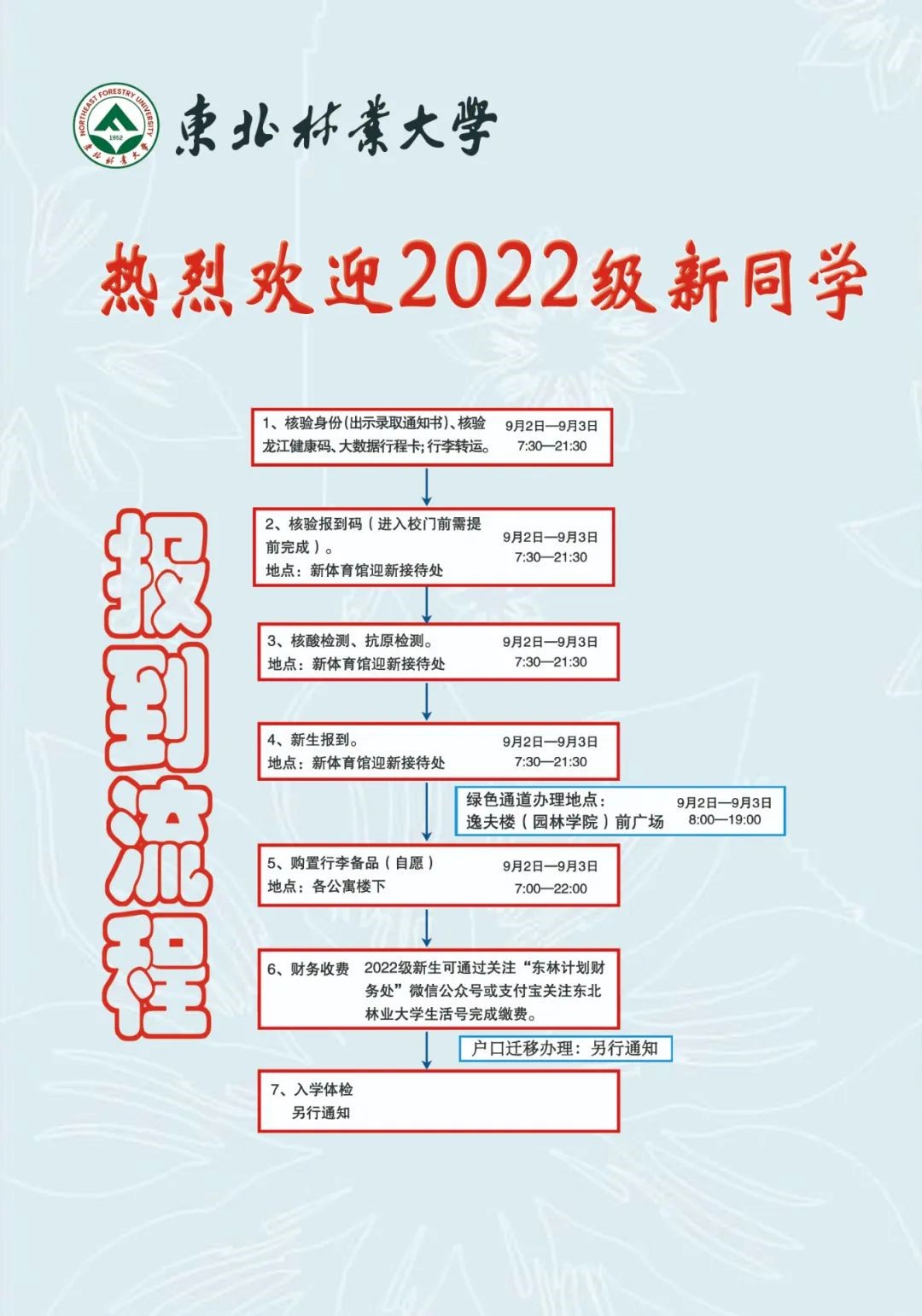 根据上级部门有关要求和《东北林业大学2022年秋季学期开学有关事项的通知》工作安排,学校2022级新生秋季学期按期开学,现就2022级全体新同学入校报到相关事宜提示如下。