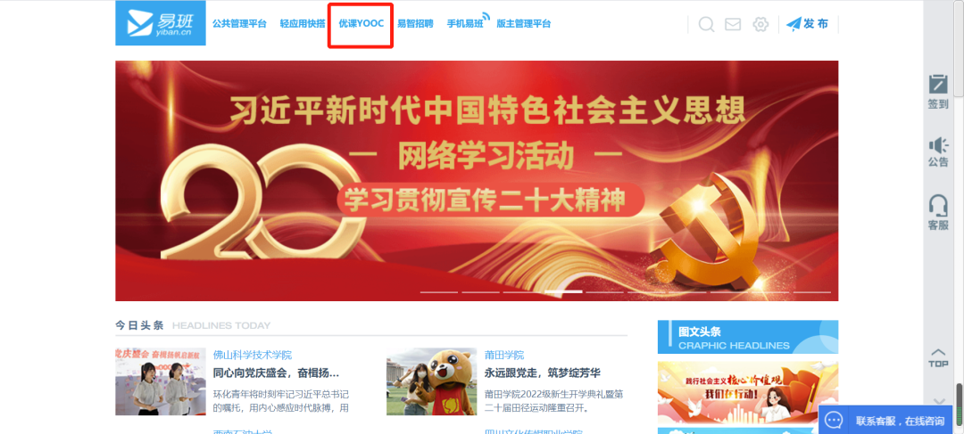 登录易班网(http://www.yiban.cn/),在上方导航栏处选择优课YOOC。