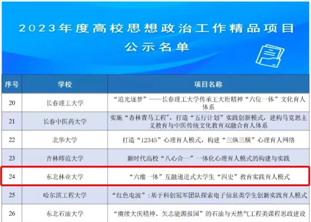 近日,经组织推荐、资格审核、专家遴选等程序,教育部思想政治工作司对2023年度高校思想政治工作质量提升综合改革与精品建设项目遴选结果予以公示。我校由学校党委常委、副校长雒文虎主持,党委学生工作部组织申报的“六维一体”互融递进式大学生“四史”教育实践育人模式项目入选2023年度高校思想政治工作精品项目。