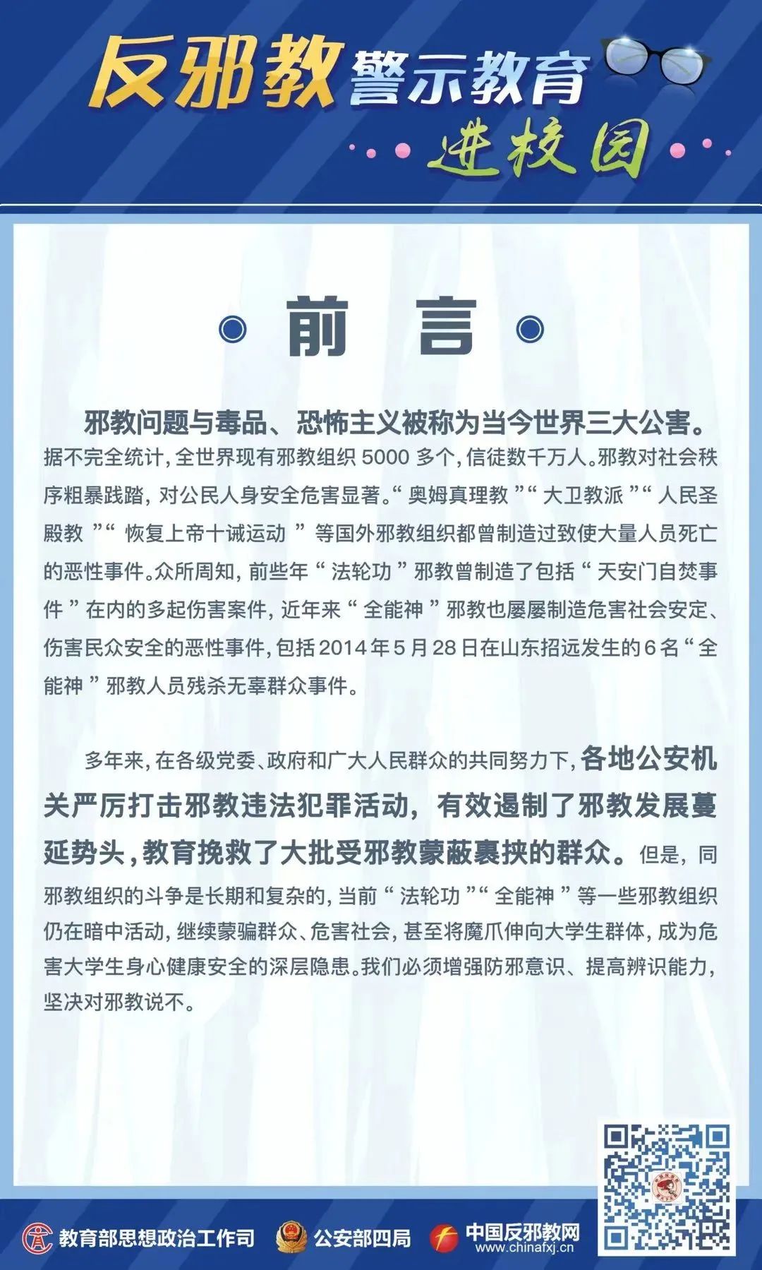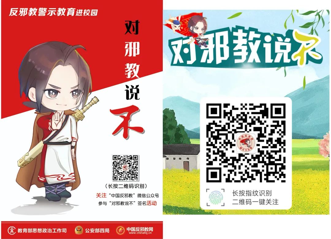 中国反邪教网是重要的全国性反邪教宣传基地。无邪君欢迎大家扫码关注“中国反邪教“微信公众号,了解更多反邪教的知识信息!