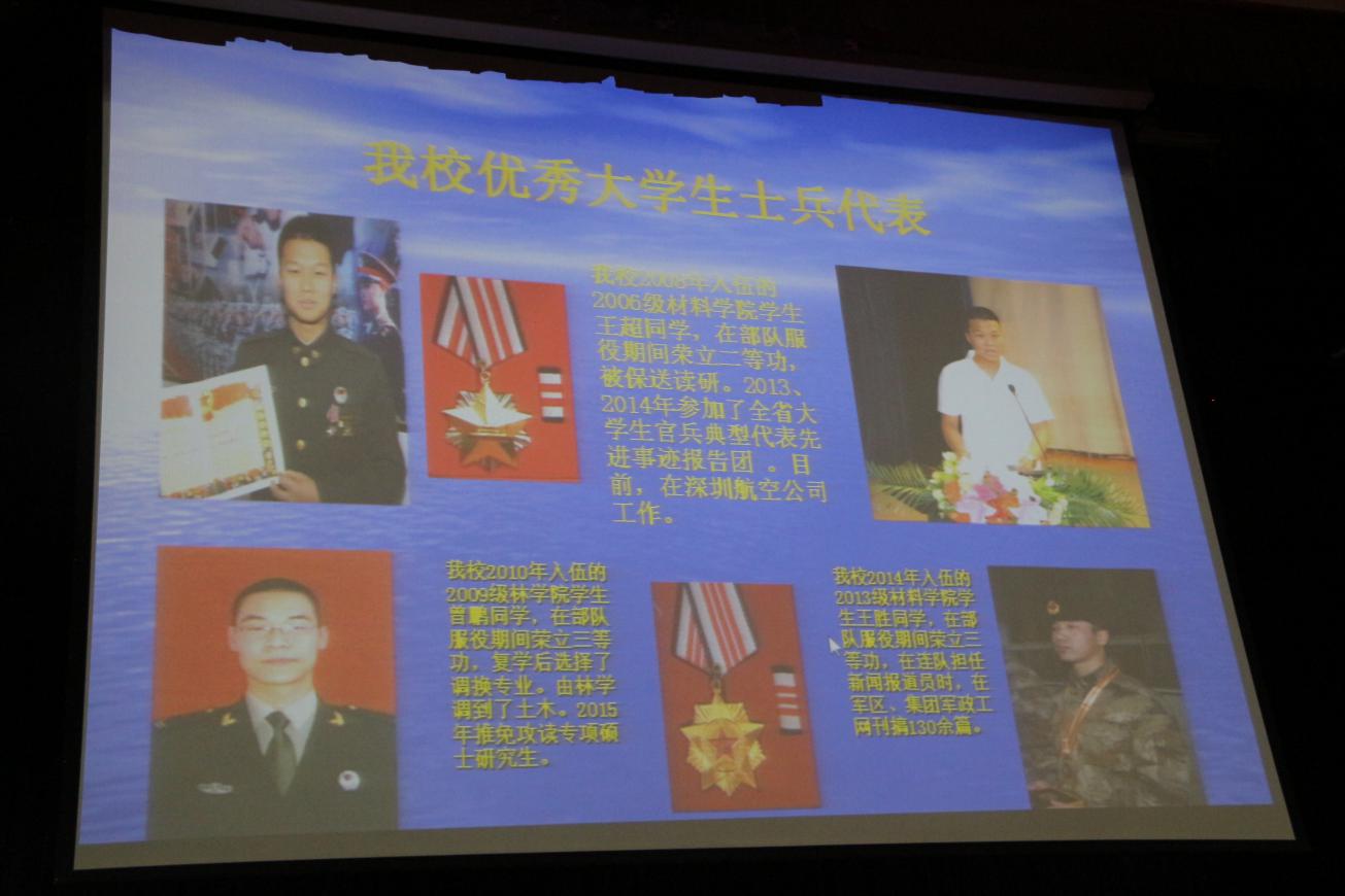 近年来,我校以向部队提供高素质兵员为目标,狠抓大学生征兵工作,入伍学生人数不断增加,踊跃出一大批优秀大学生士兵,历年入伍学生考军校人数也在不断增加。